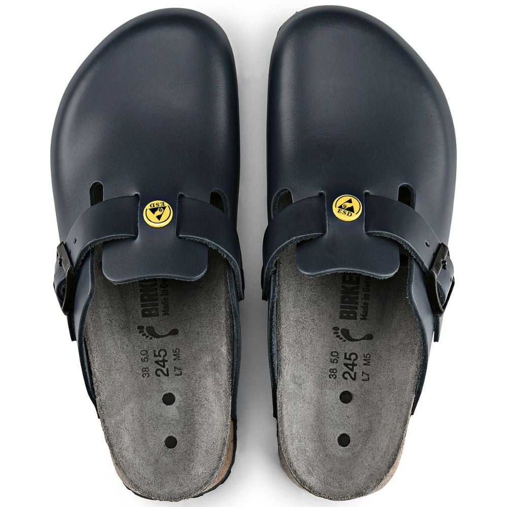 A sua confecção especial para ambientes ESD protege assim pessoas e materiais em ambientes muito sensíveis, como pode ser o trabalho com semicondutores. Todos os modelos ESD da BIRKENSTOCK estão comprovados conforme as diretrizes da norma DIN EN 61340 e satisfazem os requisitos para áreas ESD de 1,0 x 105 até 3,5 x 107 Ohm.