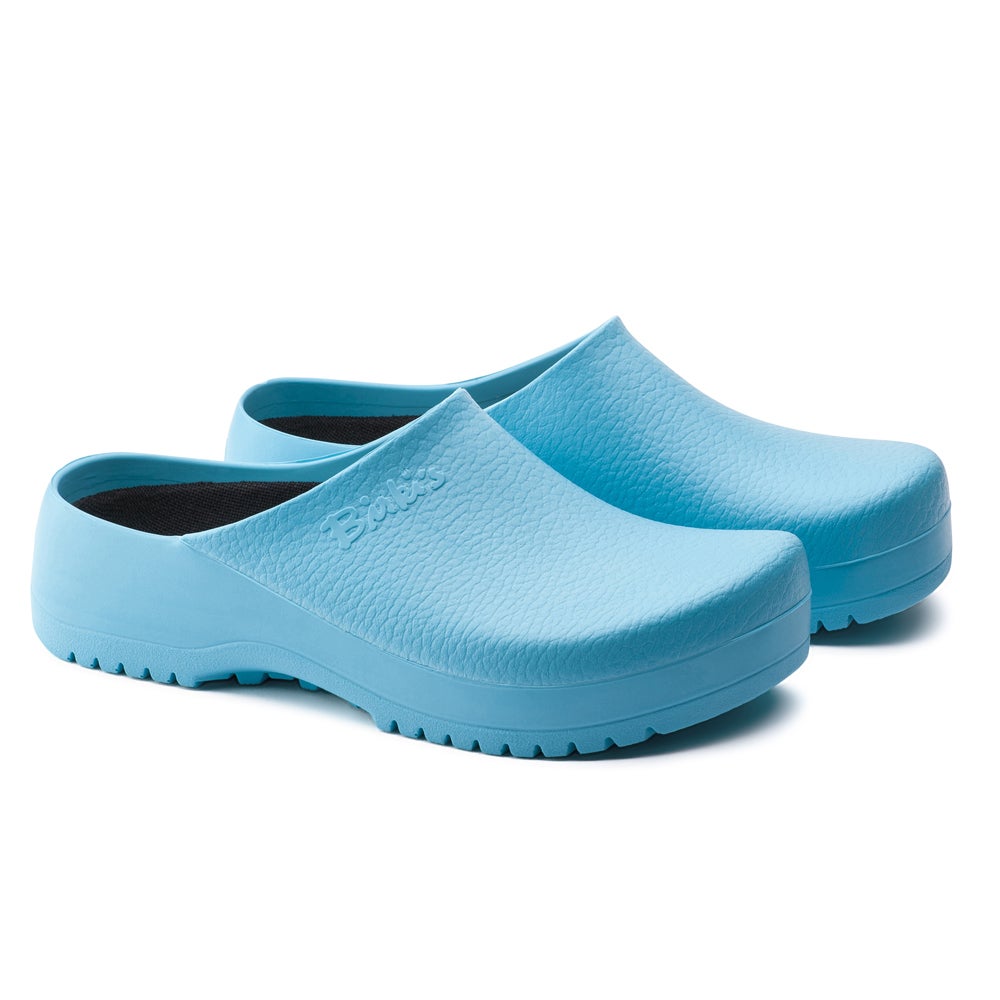 A grande seleção de cores disponível para Super Birki deixa clara a diversidade de usos que admite em ambientes profissionais e privados. Sua forma compacta é fabricada em poliuretano repelente à água e à sujeira, e além disso, resistente a óleos e gorduras.