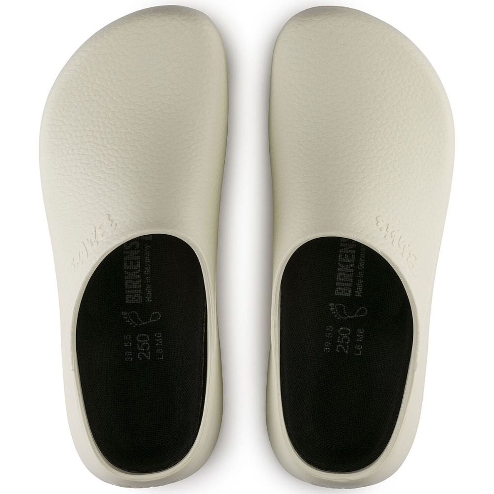 A grande seleção de cores disponível para Super Birki deixa clara a diversidade de usos que admite em ambientes profissionais e privados. Sua forma compacta é fabricada em poliuretano repelente à água e à sujeira, além de ser resistente a óleos e gorduras.